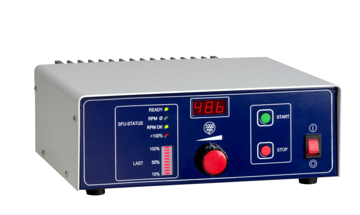 ® GmbH SFU 0200X 1000 rpm READY RPM = 0 RPM OK > 100% 100  50 10 LOAD % STATUS START STOP ® GmbH SFU 0200X config wheel ESC SET START STOP MENU ® GmbH SFU 0200X